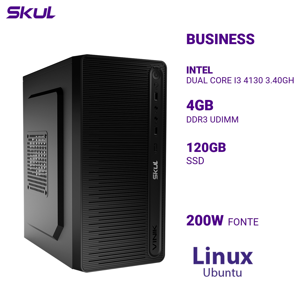 COMPUTADOR B300 DUAL CORE I3 4130 3.40GHZ MEMÓRIA 4GB DDR3 SSD 120GB FONTE 200W LINUX UBUNTU