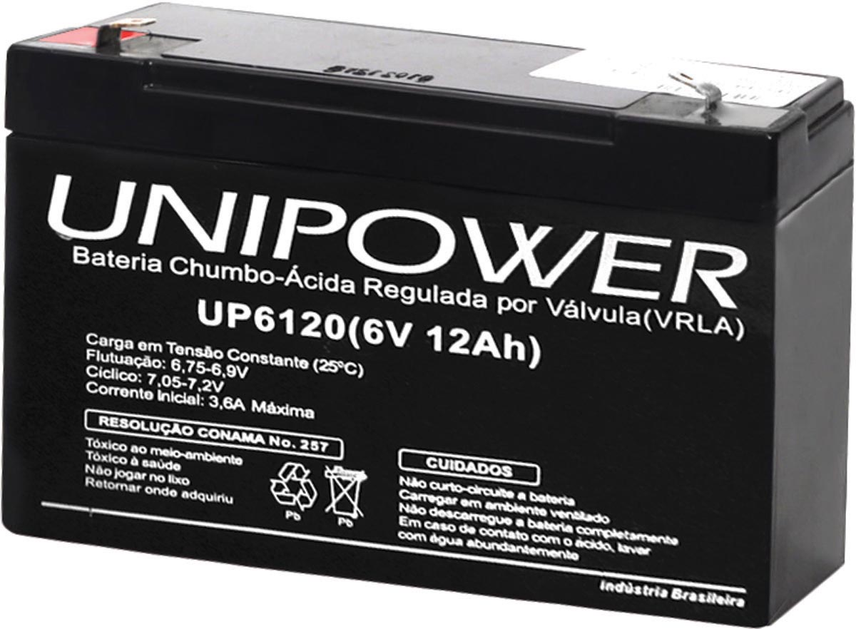 código: 11268 BATERIA 6V 12AH (UP6120) ncm: 85072010 código de barras: 7893007670207