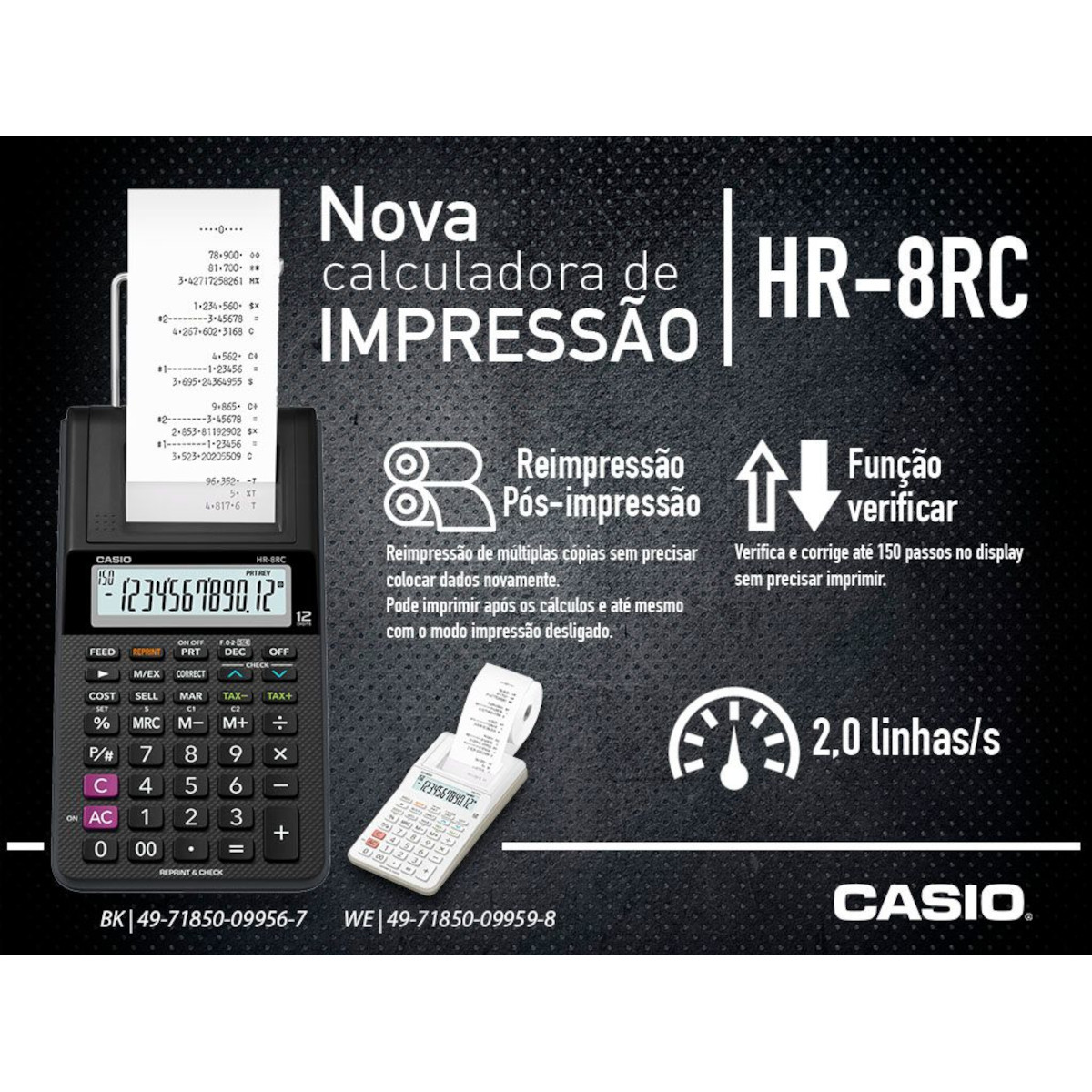 CALCULADORA COM BOBINA, ACOMPANHA A FONTE DE ALIMENTAÇÃO HR-8RC-BK-B-DC DISPLAY 2.0 PRETA