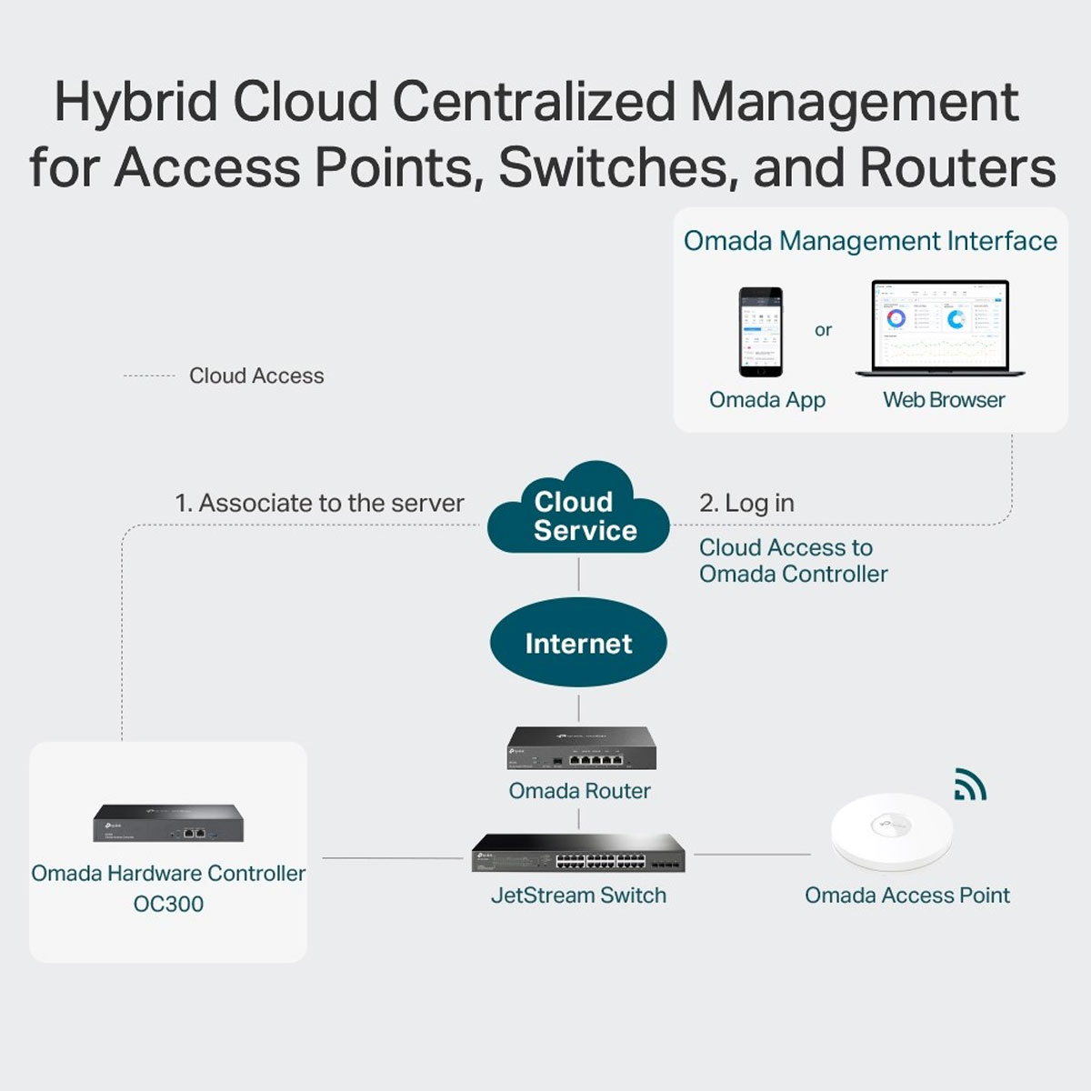 Nuvem Híbrida para Máxima Conveniência: Apresentando tecnologia de nuvem híbrida, o Omada Hardware Controller OC300 permite que você controle remotamente toda a rede em qualquer lugar do mundo com acesso à nuvem. Gerencie localmente os dispositivos com o máximo em segurança e estabilidade.