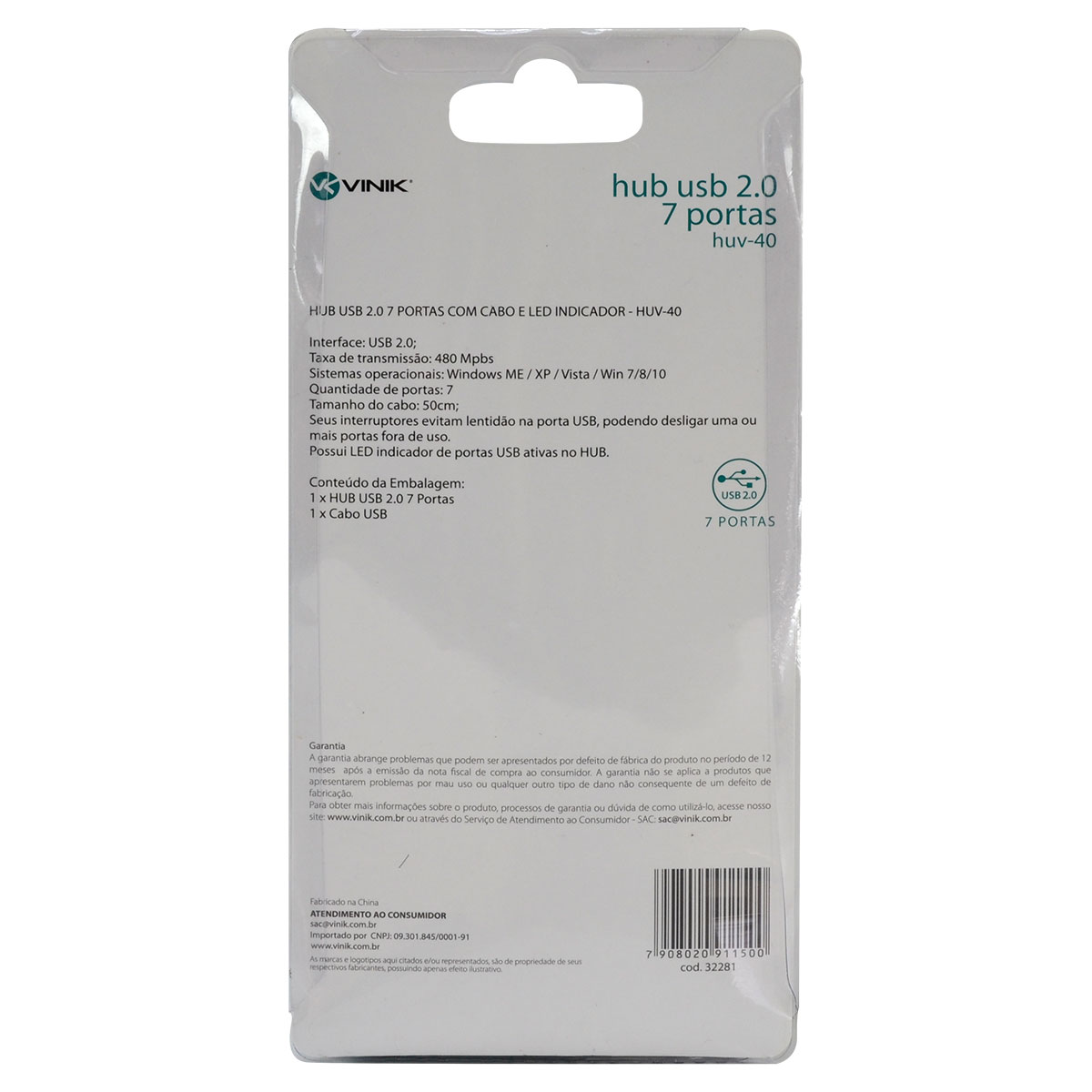 Com interruptor que permite ativar ou desativar as portas do HUB, evitando congestionamento da porta USB do computador
