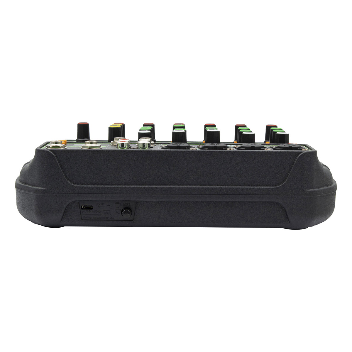 Possui 16 efeitos digitais (DSP) integrados, além disso, essa mesa de som analógica de 8 canais, possui 4 entradas combo (XLR + TRS), equalizador de 2 bandas por canal, Phanton Power, entrada de linha estéreo TRS, saída principal (L+R), saída rec RCA e conexão para fone de ouvido 3,5 mm (P2).