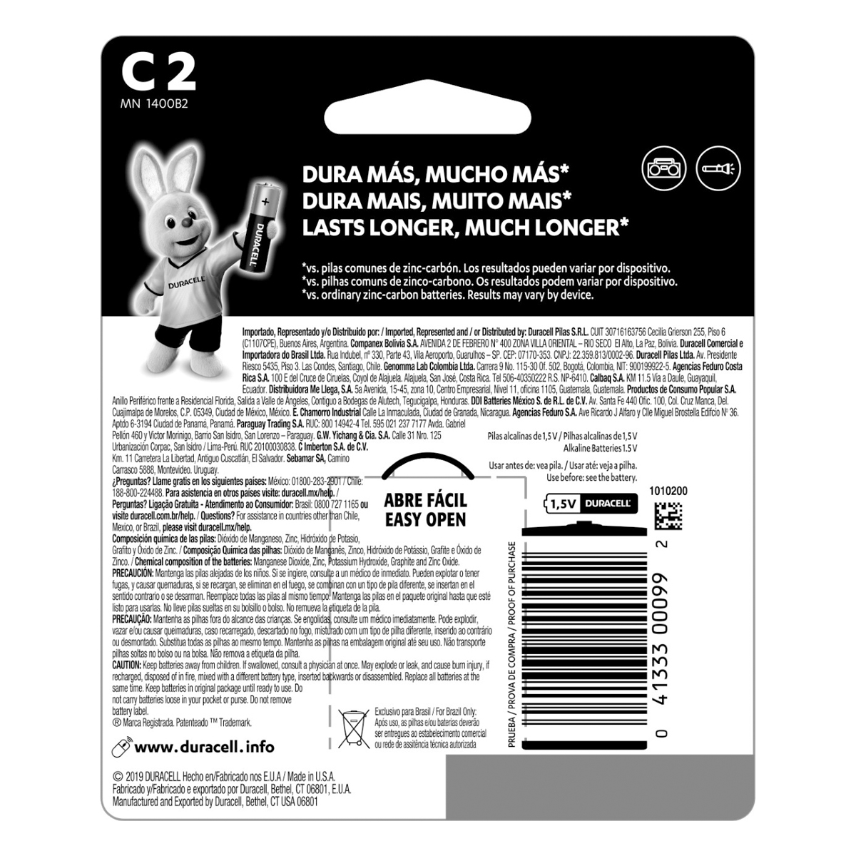 Dura até 10 vezes mais vs. pilhas comuns de zinco-carbono. Os resultados podem variar por dispositivo.