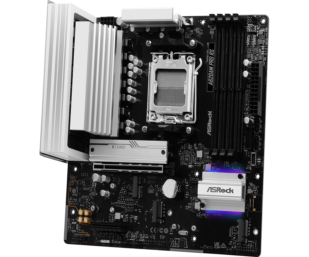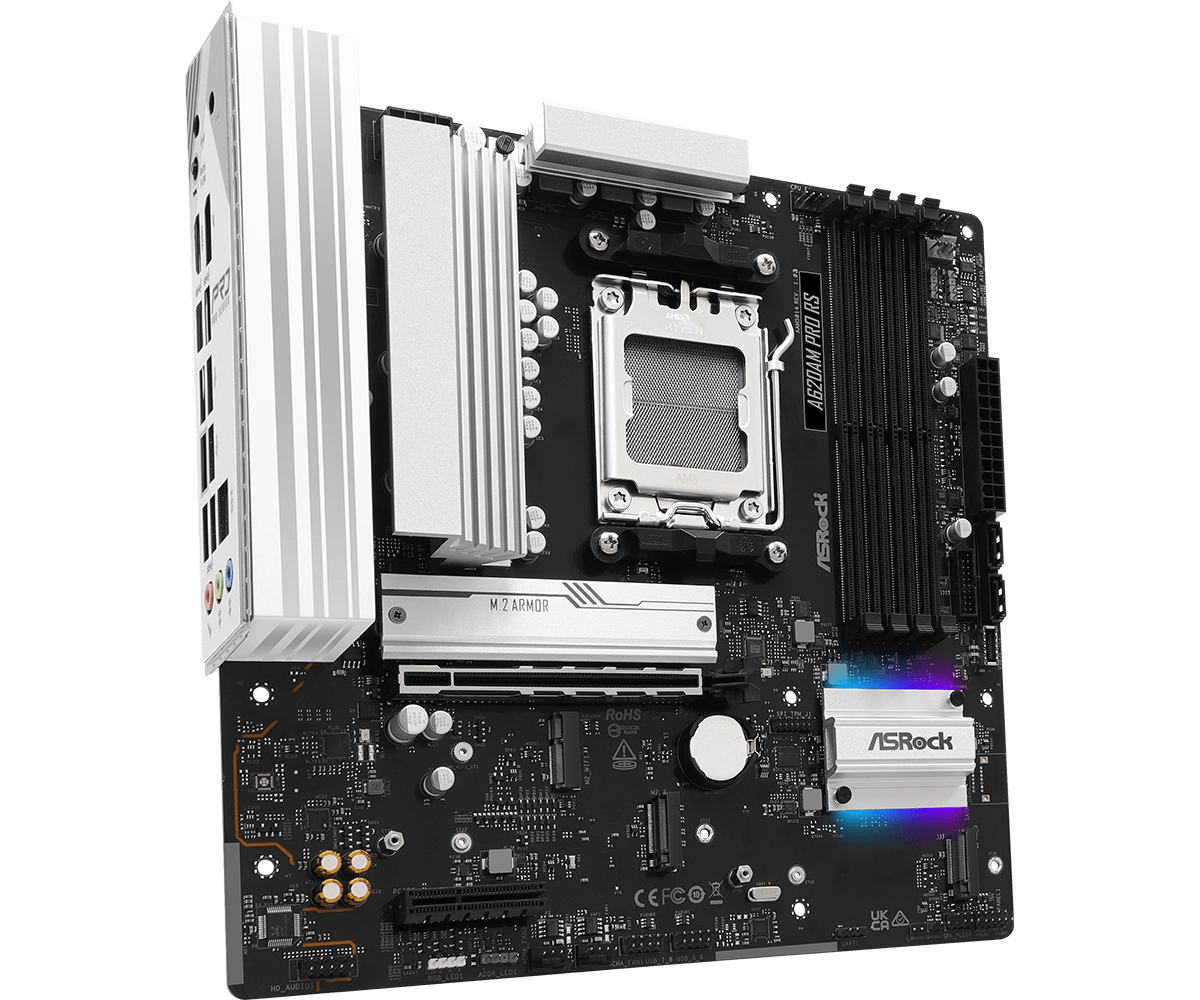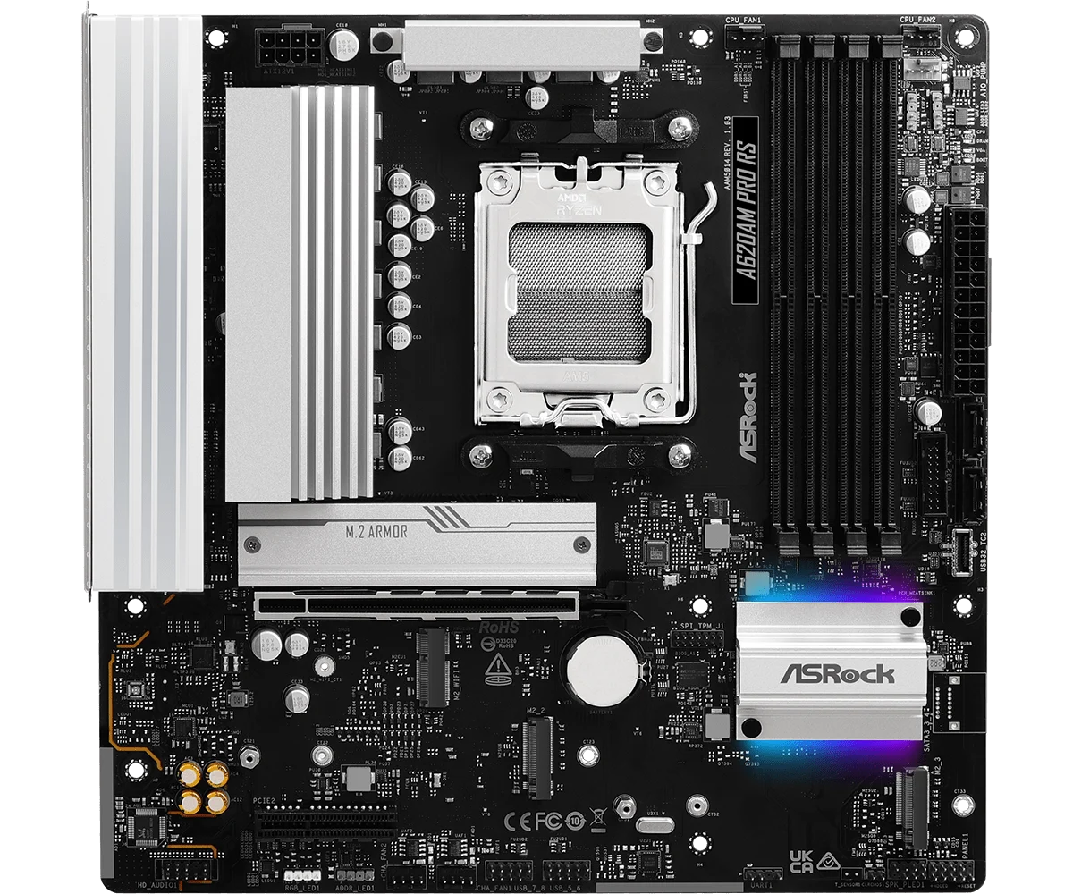 Placa Mãe Asrock Am5 A620Am Pro Rs M-Atx 4Xddr5 256Gb 4Xusb2.0 3Xusb3.2 1Xusb3.2 Tipo-C Hdmi/Dp Rede Giga 3Xm.2 Nvme