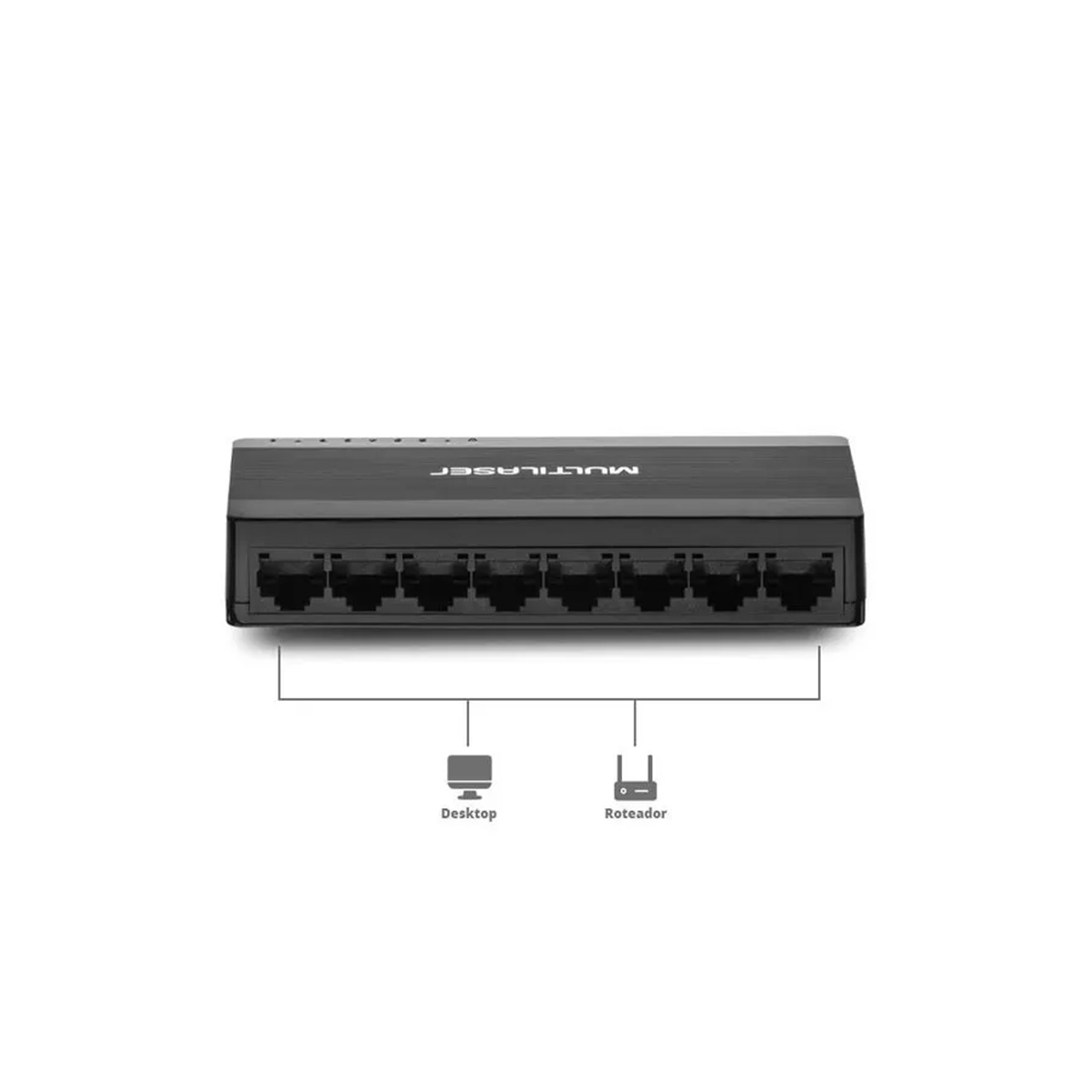 Conecte roteadores ou computadores no switch por meio de um cabo RJ45, para ter disponível multiplas redes.