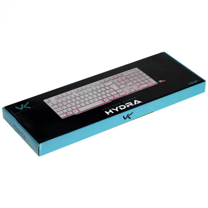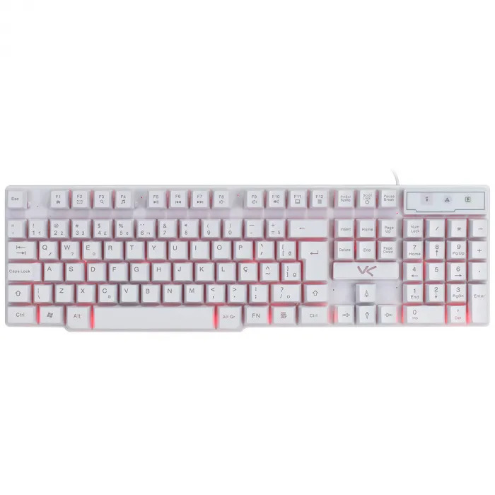 TECLADO GAMER VX GAMING HYDRA BRANCO ABNT2 MULTIMÍDIA COM LED VERMELHO SENSAÇÃO MECÂNICA USB 1.8M – GTH110BV